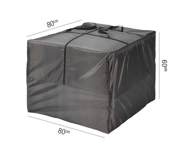 У нас вы можете купить чехол на садовые подушки 80 х 80 х 60 см. Чехол на садовые подушки выполнен в чёрном цвете, на верхней части располагаются ручки для удобной переноски. Изготовлен чехол из дышащего водонепроницаемого материала, который позволяет ограничить появление конденсата и плесени. Чехол лёгкий в обслуживании, занимает небольшое количество места в тот момент, когда он не используется. Также у него есть шнур с двумя кулисами, удобная сумка для хранения.